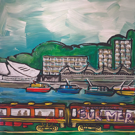 À la demande du foyer de Méricourt, j'ai peint une série de 24 toiles sur le thème du voyage. Suite à des rencontres avec les résidents, j'ai choisi un certain nombre de lieux cités par les personnes âgées.